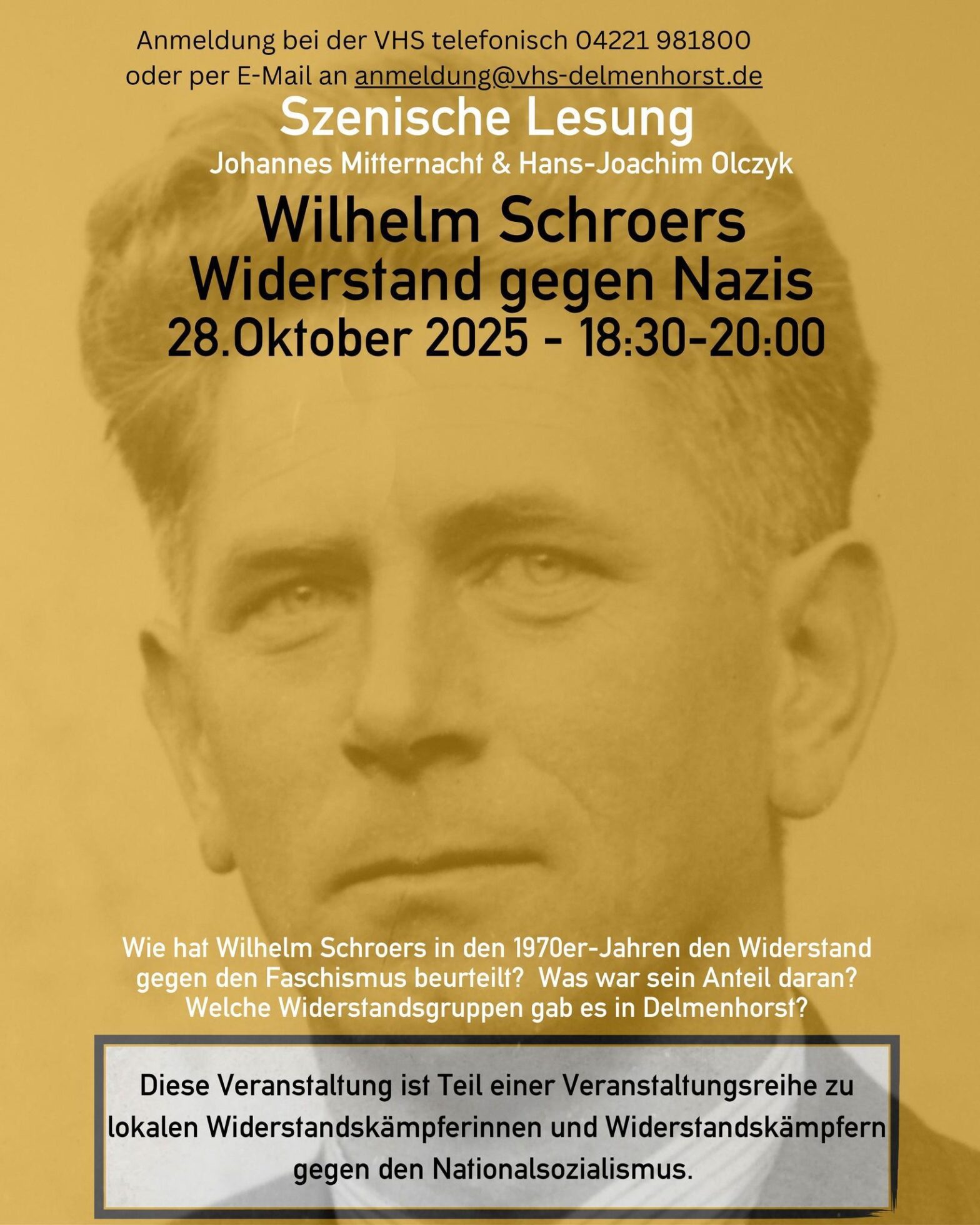 VHS Delmenhorst schreibt: „Vor 125 Jahren hat Wilhelm Schroers, der Gründer der vhs Delmenhorst, in Bremen das Licht der Welt erblickt. Seine Lebenserinnerungen, die er der Nachwelt schriftlich überliefert hat, sind mittlerweile erschienen. Nachdem 2018 ein Buch die Jahre 1933 bis 1945 umfasste, wird im Herbst des Jahres 2025 eine überarbeitete und damit vollständige Fassung… 28.10.2025: Lesung in Delmenhorst, VHS, 18:30 Uhr weiterlesen